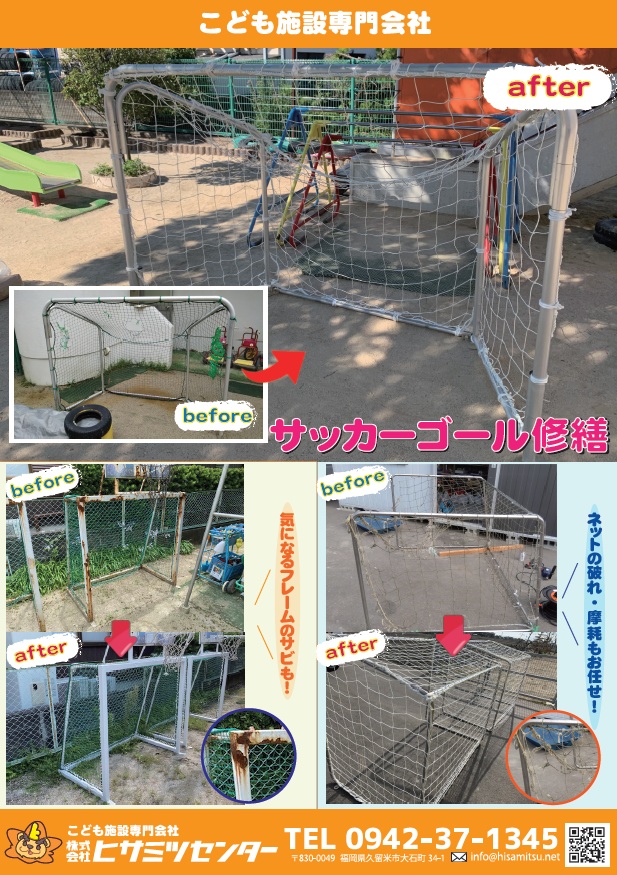 サッカーゴール ネットのほつれや破れ、フレームにサビはありませんか?