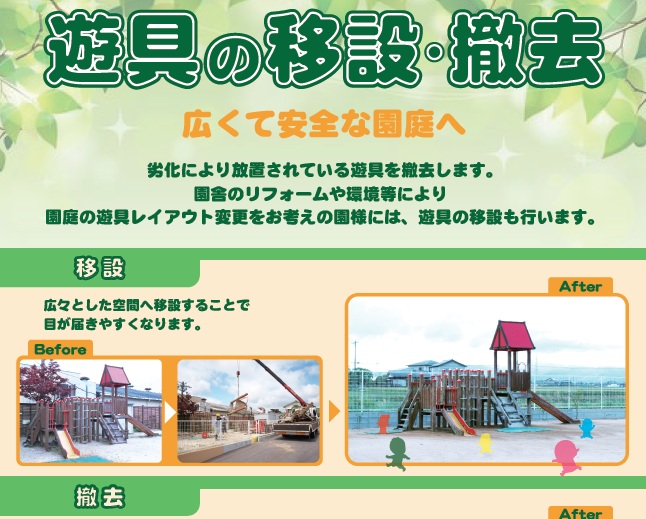 遊具の移設・撤去で広くて安全な園庭へ