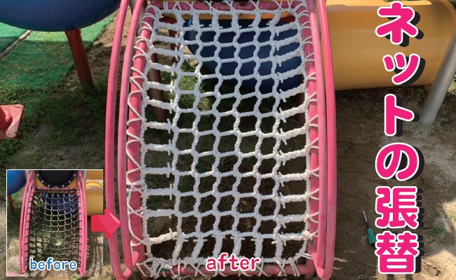 ネットの張り替え、新設!~安全安心な遊具へ