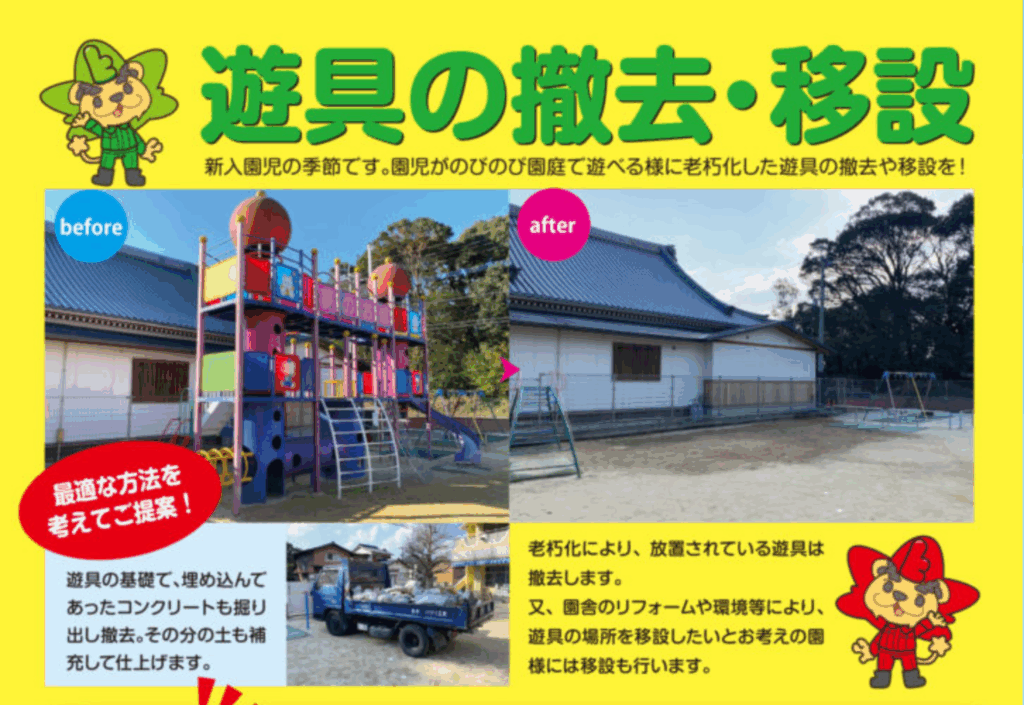 遊具の撤去・移設で園庭は広々。園児はのびのび!